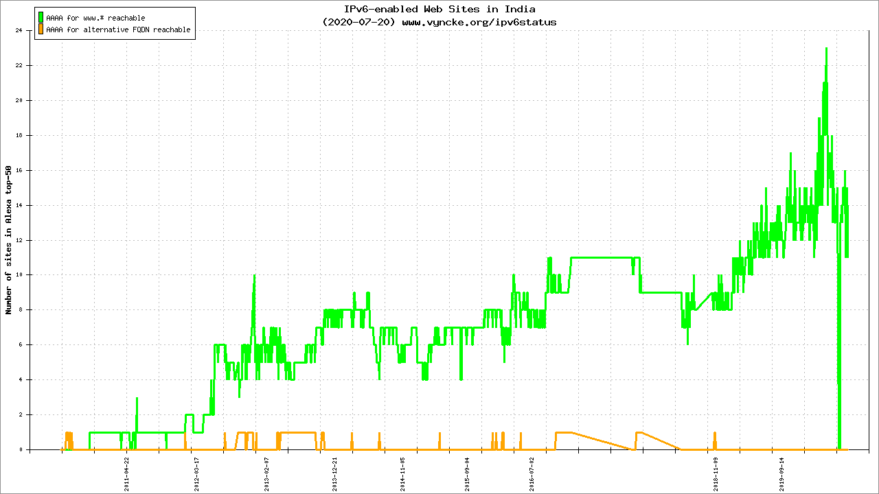 图6 印度TOP 50网站IPv6支持数量趋势